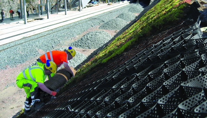 One significant hurdle was constructing a 45-degree vegetated slope, with the risk of erosion heightened during spring seasons due to rainfall and snowmelt. To maintain the slope’s stability and the road’s integrity, the GEOWEB Vegetated Slope Protection System was chosen for soil stabilization and erosion control.