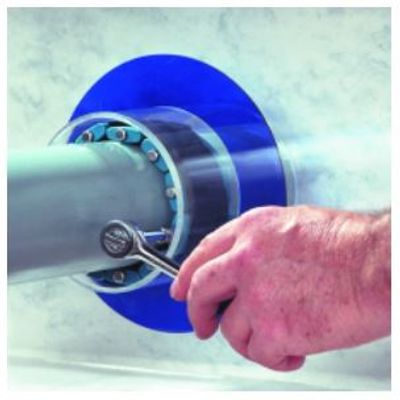 The Pen-Seal from Proco Products has been tested and will withstand a hydrostatic seal up to 20 pounds per square inch gauge (psig) or 40 feet of head pressure and temperatures up to 250 F (121 C) and -40 F (4 C). The Pen-Seal uses glass-reinforced plastic, and the hardware is made of steel zinc dichromate. To ensure corrosion resistance, 316 stainless steel is also available. Nitrile can also be used if the pipe penetration seal will come in contact with hydrocarbons, oil, gas, or miscellaneous solvents.