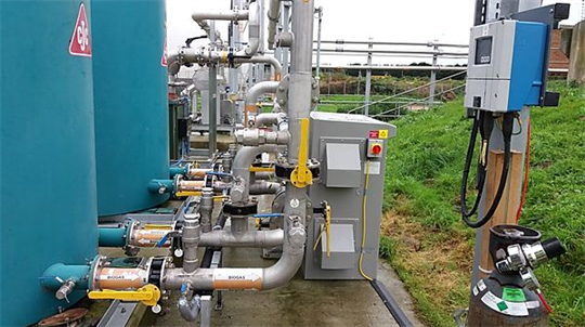 Activated carbon filters work by passing the biogas derived from the AD plant through a metal tower filled with activated carbon. Normally the gas will have been dried by running through a chilling plant to remove excess water which would be absorbed by the Carbon.