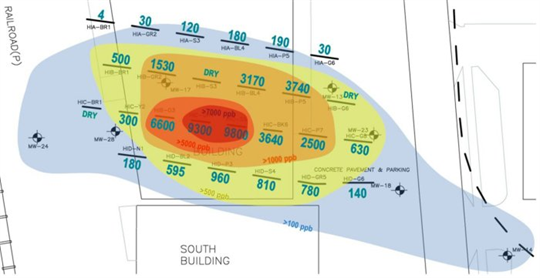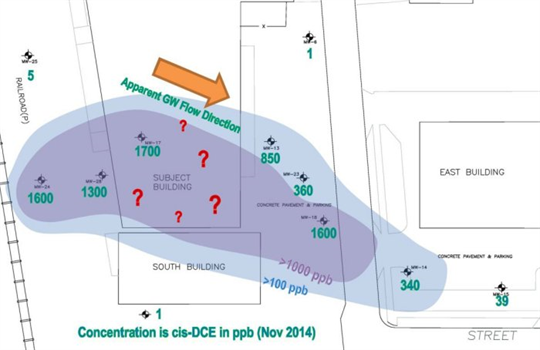 The data collected is invaluable. Most of all, from the collected data, the true ‘hot’ zone under the building has been identified (a floor drain), as well as a better estimate of mass present. This data also provides clear iso-contours of the plume.