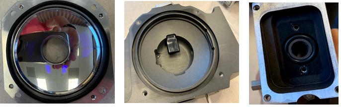 In addition to verifying system operation and calibration to ISO 21501-4:2018 requirements, physical inspection was made of the optical mirror to ensure no damage had occurred during testing. As can be seen in the figures below, the optical collection surface of the instrument sustained minimal discoloration from VHP exposure.