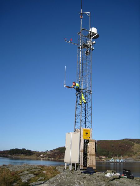A standard Aanderaa Weather Station(WS) is installed on an island close to the port on an existing mast structure. Here wind speed and wind gust in addition to wind direction is measured.