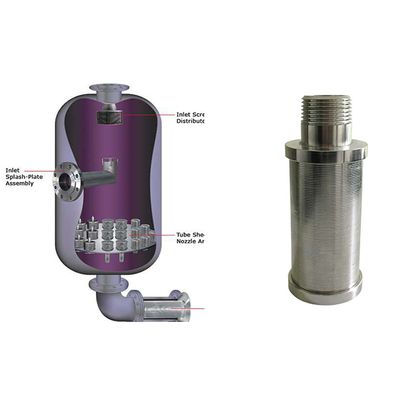 The wedge wire nozzle (also known as a Johnson strainer nozzle) is mounted on the middle or bottom plate of the ion exchange vessel. It serves key functions: