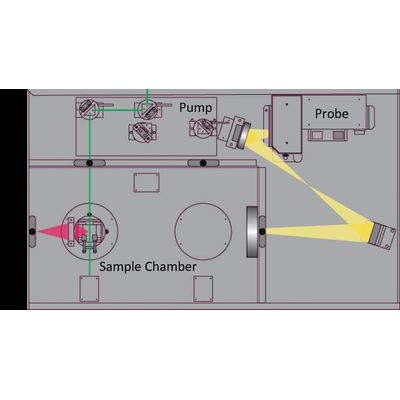 Edinburgh Instruments incorporates lasers into photoluminescence spectrometers such as the FLS1000 and the FS5, allowing both CW and time-resolved LIF. Pulsed Nd:YAG lasers, which are popular LIF excitation sources, can be integrated with the FLS1000 and the LP980 spectrometers. In particular the LP980 Transient Absorption Spectrometer has been specifically designed for use with these sources, and it can be configured with a holder specific for LIF spectroscopy. In this configuration (Figure 3), the probe lamp is blocked by a shutter controlled by the software as it is not required for LIF, while the pump beam is directed to the sample which sits closer to the collection optic for maximum LIF sensitivity. The LIF configuration in the LP980 Spectrometer maximises the signal detected ensuring the best performance.