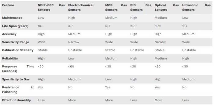 Different Types Of Gas Sensors