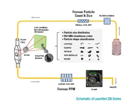 We can determine the source of particles, whether they are due to water, sand, dirt, or which type of wear. All of this information is processed through the LaserNet Fines and then fed into the algorithms that produce the diagnostic and prognostic determinations.