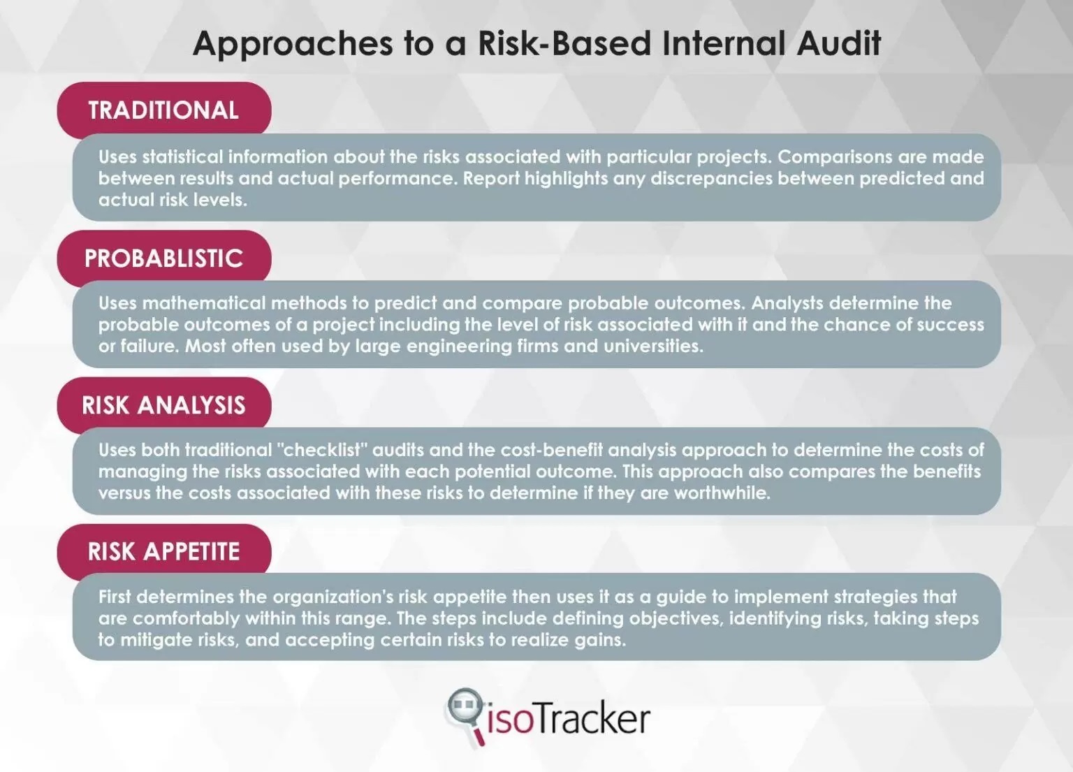 isoTracker offers both Risk Management and Audit Management software modules, and these can integrate seamlessly as part of our quality management system.