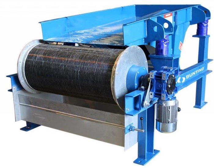 The critical distance (i.e. between the material and the magnetic element) is greater on a Drum Magnet than a Rare Earth Roll Magnetic Separator. As magnetic fields diminish in intensity over distance, all magnetic separator designs focus on limiting that ‘critical distance’.