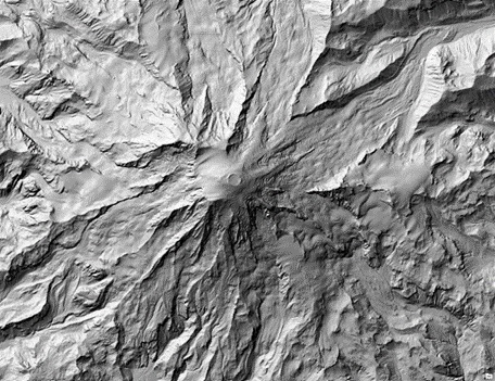 Another example of essential deliverables is the hillshade model. This standard method of terrain representation allows for the detection of topographic features that may not be readily apparent otherwise. These models are not meant to be aesthetically pleasing but to have maximum contrast to uncover terrain features. They are typically derived from DEMs or digital surface models (DSMs) and look like a hypothetical light source illuminated by the elevation surface. Hillshades are often used as the background for a cartographic map or to detect and predict terrain hazards like landslides. An example of a hillside is shown below. [6]
