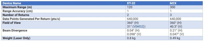 Inertial Labs and WISPR partnered to create a wholly integrated drone LiDAR solution using the Ranger Pro with the RESEPI XT-32 and RESEPI M2X. The drone and the navigation system of each complete solution remained the same; the only change was the LiDAR scanner. Below is a comparison of both scanners in a few key parameters.