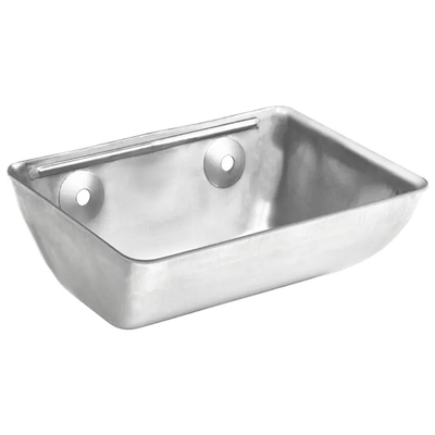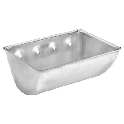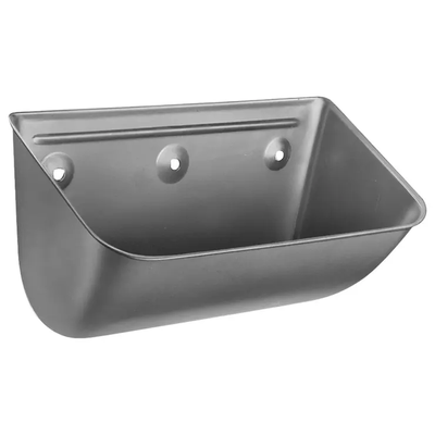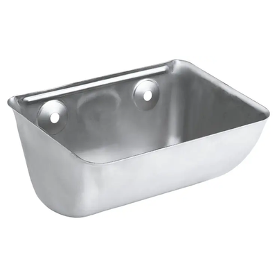 Deep drawn solid steel elevator bucket, designed to replace large fabricated elevator buckets. For use with both standard rubber and steel web belting along with plain holes, on a chain and bucket elevator.