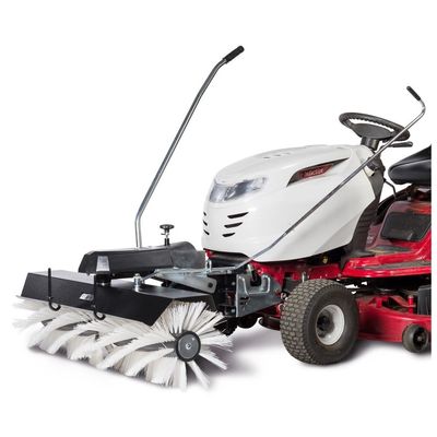 Extend the application possibilities of your lawn tractor with different attachments for the all-season machine. Combined with our tool less quick-change system, convert your lawn tractor into a sweeping machine with minimal effort. All operating elements can be easily reached from the driver seat. Brush drive switches on automatically when lowering the attachment sweeping machine. The tool less quick-change system is partially integrated in the attachment frame. Thus projections in front of the lawn tractor are avoided and the attachment frame protects the front of the tractor against damage. Thanks to the tool less quick-change system the attachments can be coupled or uncoupled with minimal effort.