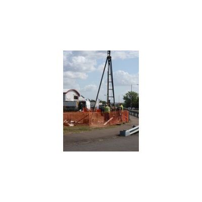 Light-cable percussion is the most common drilling method used for geotechnical site or ground investigations. Depending upon access limitations and favourable ground conditions deep boreholes up to 50m depth can be formed. Light-cable percussion drilling uses a mobile rig with a winch of between one to two tonne capacity driven by a diesel engine and a tripod derrick of about 7m height. The derrick folds down so that the rig can be towed by a four-wheel drive vehicle. In areas where there is restricted headroom or access limitations a demountable or low-headroom drilling rig can be used. This rig is brought to site in sections on a trailer and the equipment is re-assembled on site.