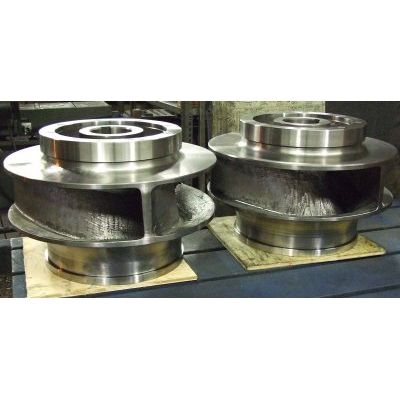 Two hardened ductile iron impellers with stainless steel wear rings, front and back. Impellers were sold to York Region, ON. Pumps were originally Worthington 12” MNZ. Also supplied suction cover wear ring and stuffing box cover wear ring – both stainless steel.