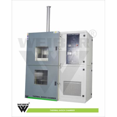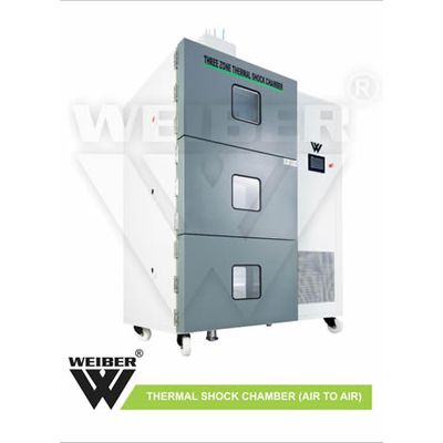 WEIBER designs and manufactures Air to Air Thermal Shock Test Chambers, Two Zone Thermal Shock Test Chamber, Customised Automotive Thermal Shock Test Chambers with separately controlled temperature zones (2 zone and 3 zone), depending on configuration of the chamber chosen. In thermal shock testing alternating high and low temperatures are fed in the chamber. To observe the product characteristics and failure occurrences caused by different materials and their thermal expansion coefficients, thermal shock testing is subjected to the product.