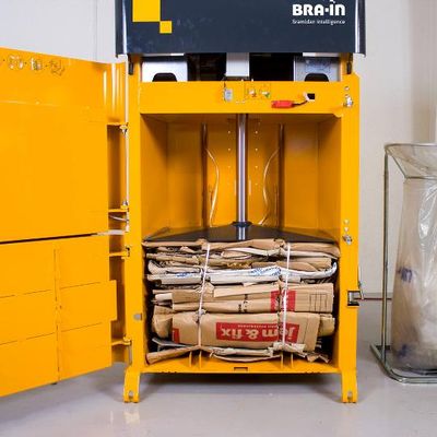 The B3 baler from Bramidan is designed for efficient and safe waste handling in various environments. It simplifies the compaction process, making it easy to operate while saving time. The baler operates quietly, with noise levels comparable to an air conditioner, ensuring a conducive working environment. It features the BRA-IN, Bramidan Intelligence, which allows users to connect, monitor, and analyze the equipment through a web portal or app, enabling data-driven decisions and operational cost savings. The system requires an active subscription, which may vary in availability by country. The B3 baler is ideal for locations with limited space, such as retail stores, warehouses, and manufacturing facilities, accommodating the disposal of shoe boxes and other materials. It supports environmentally friendly operations by helping reduce the volume of waste. Safety protocols ensure that anyone can operate the machine after brief training, though regulations stipulate that individuals must be 18 years or older to empty it.