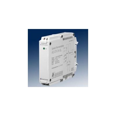 The isolation amplifier AD-TV 1 GX, with a construction width of only 6.2 mm, serves the galvanic separation of DC voltage signals. The output signal follows linear the input variable and is, up to a limiting value, independent of the connected burden (0-10 VDC, 1:1 input/output). Due to the narrow design, a high packing density is achieved. In combination with a DIN rail connector, the wiring is considerably reduced.