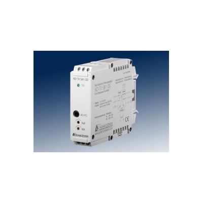 The AC buffer amplifier AD-TV 581 GS serves the detection of effective values of sinusoidal alternating currents. The input variable 0-1A AC or 0-5A AC is here freely selectable via terminal.The alternating current is galvanic separated via a current transformer and transformed into an impressed DC standard signal 0/4-20 mA or 0/2-10 VDC. The zero point and the range of the measuring signal can be adjusted with trimmers at the front. The trimmers can be activated via a wire bridge. The start of the output range can be modified via a wire bridge from 0 to 4mA or from 0 to 2V, exceeding the measuring range or falling below the measuring range is indicated with a flashing LED at the front of the device. The device can be configured with a PC software via an optional interface.