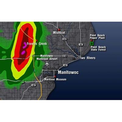 An option for the DOPRAD Radar System. You can get the most out of your ADC Doppler Weather Radar by upgrading to our Mean Radial Velocityoption. Mean Radial Velocity will open up a whole new world of severe weather indicators allowing your meteorologist and viewers to get a better handle on the true nature of storms. 15 levels of Doppler velocities in an independent mode : 7 levels of approaching velocities, 7 levels of receding velocities, and 1 cross-over velocity. Use 15 conventional shades of red and blue, or use your own user-defined color selection. In real-time, you can have the capability to display severe weather signatures.
