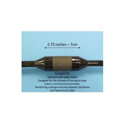 AGI’s passive graphite electrode cable (U.S. Patent 6,674,286) is used in corrosive environments and where electrolysis—metal contact with water—can occur. Instead of thermoplastic—which is less expensive and easier to apply—we use thermoset polyurethane which ensures that our electrodes chemically adhere to the outer jacket of the cable and become completely waterproof and heat resistant. This means that you can survey in liquid environments without gathering noisy data caused by poorly insulated cables.
