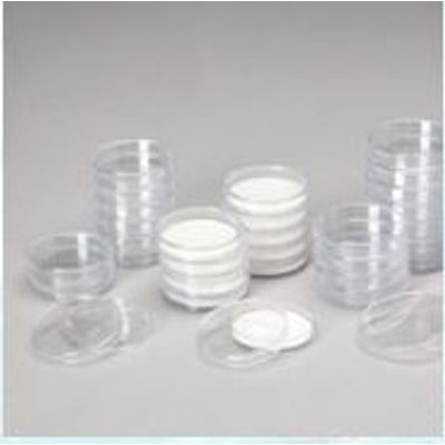 Polystyrene dishes suitable for culturing microorganisms on 47 mm diameter membrane filters.Snug fit prevents drying during incubation.
