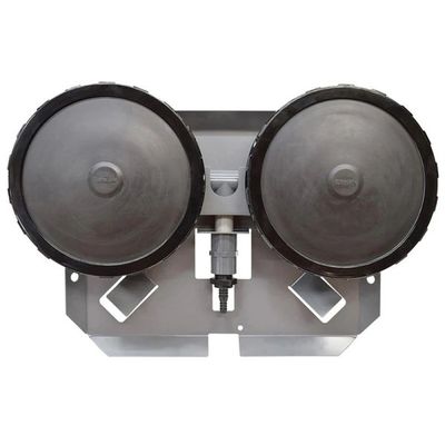 AIRBASE self weighted membrane air diffuser assemblies are designed to be placed at the bottom of a pond or lake. The self weighted design eliminates need for gravel and reduces installation time. The AIRBASE diffuser assembly features round rubber (EPDM) membrane diffusers with thousands of holes which produce small air bubbles when supplied with air from an on shore compressor. These bubble rise to the surface and create circulation that helps destratify and aerate the water body.