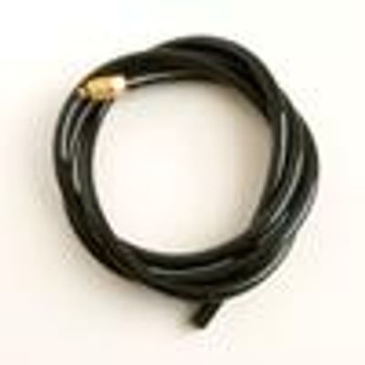 The standard sampling hose with 1/8" inside diameter (ID) and 1/4" outside diameter (OD) and a length of 40 inches (1 meter) serves as a conduit between the target site of measurement and the microAeth. The Barb Fitting Swivel Connector allows for ease of movement and prevents the black static dissipative polyurethane hose from binding.