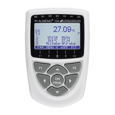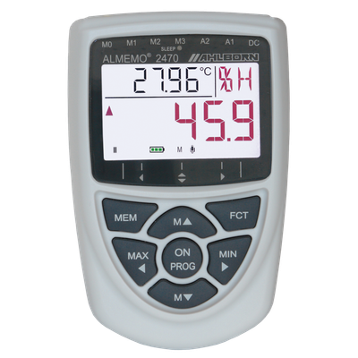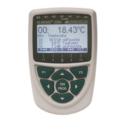 ALMEMO® data logger and professional measuring instrument. Functions for all application areas. 1 or 2 measuring inputs. Also with integrated sensor for temperature, atmospheric humidity, atmospheric pressure.