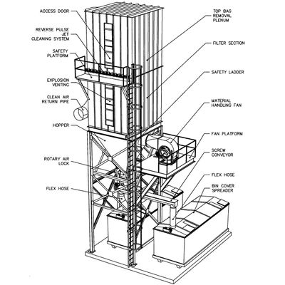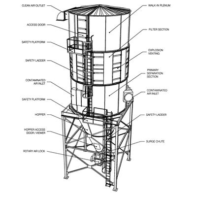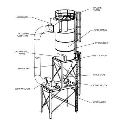 Small package dust collectors 4000 and 7000 CFM for stand alone systems.