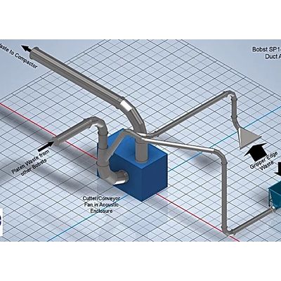 All Airmec Waste Extraction Systems and integral system components are accurately modeled in `3D Real Scale`, utilising the latest available AutoCAD software. This ensures the highest accuracy in manufacture and makes certain the proposed system fits neatly among existing production equipment, current operations and within building parameters. This important process, guarantees a timely and trouble free installation with minimum disruption to peripheral processes.