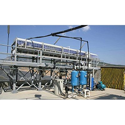Once the filter arrived on site the client was eager to get into production! As the picture shows, the filter still on the shipping pallet was elevated using stacks of pallets. Whilst the connections were being made, the production staff made a trial batch and within 4 hours of arrival, material was being produced.