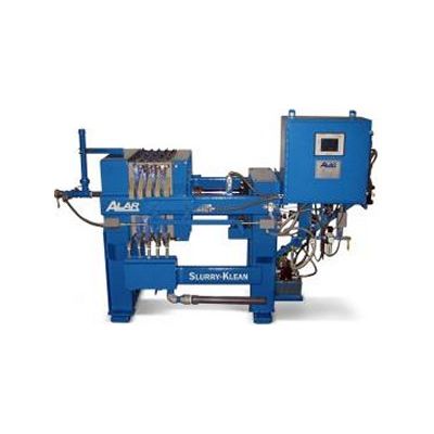 The Slurry-Klean is an economical compact plate-n-frame filter press with the ability to filter and purge automatically; providing continuous operation with minimal labor. The small footprint and simple utility requirements make the Slurry-Klean a portable system capable of handling a variety of process waters.