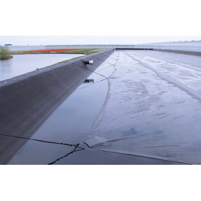 Our silo liners are available in different versions. Installation of the liner over the edge of the tank is carried out using stretch-free stainless steel wire and stainless steel ratchets. Needless to say, Albers Alligator will supply all equipment needed, such as protection felt, grommet cuffs, anti-algae covers, etc. Our silo liners are tailor-made to fit any tank size.Albers Alligator - Basin Liners and Slope Protection