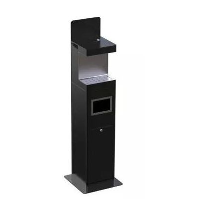 The station has: 2L refillable liquid container (up to 5000 cycles per tank), battery or mains supply, LCD battery charge indicator, liquid level sight glass. Additionally, protection against unauthorized opening. Stainless steel products available in satin or glossy finish. Products made of galvanized steel and additionally painted with powder paint have anti-corrosion properties and increased durability. This model is equipped with the stand that serves as container, it may be locked with a key.