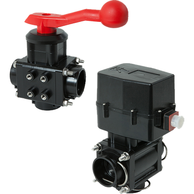 Properties: Maximum pressure: 12 bar. Switching time: 0,6 .. 0,8 s. Material: POM GF, stainless steel, FPM- und NBR-seals. Drive: manual, 2-Wire, 3-Wire (+) driven, 3-Wire (–) driven.