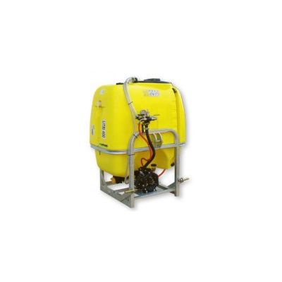 Hot galvanized steel frame. Polyethylene tank. Screw-lid. Strainer filter located under the lid. Hand-washing tank. Suction filter predisposed for self-filling. Diaphragm pump. Pressure regulation unit.