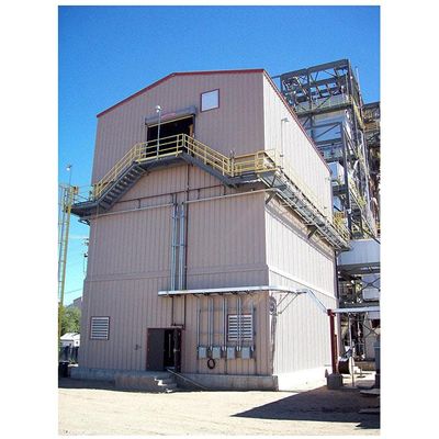 Sixty Five Megawatt Utility Power Boiler Baghouse designed to filter 225,000 ACFM at 325°F. The eight module baghouse incorporates long bag cleaning technology and penthouse plenum top removal door system for ease of maintenance. The flue gas filtered is generated from the circulated fluid bed combustion of various blends of low to medium sulfur coal. The filter media is laminated with a PTFE membrane to provide very low outlet emissions.