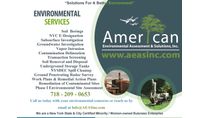 American Environmental Assessment & Solutions, Inc. (American Environmental) is a leading environmental company providing environmental services including Phase I Environmental Site Assessments (ESA), Phase II Subsurface Investigation (soil, soil vapor and groundwater), NYC E-Designation investigations, NYSDEC Spill cleanup, spill number closure and remediation of contaminated soil and contaminated groundwater. https://www.aeasinc.com