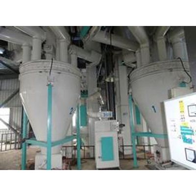 Automatic feed batching system is used for the batching and mixing of feed materials of animal feed, such as chicken feed, cattle feed, pig feed and goat feed etc. And the materials to be processed can be powder of grains like husks, maize, wheat, beans, peanut, etc. The weighting scope is 50-6000kg.