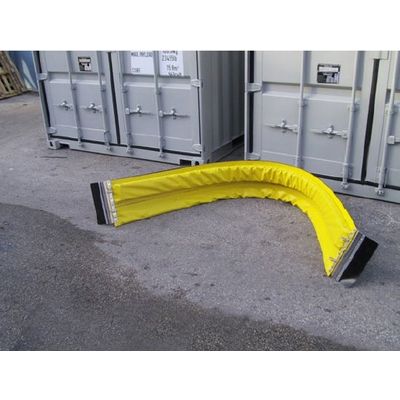 Bunker Booms are used on land-to-water transfers, or mid-stream transfers of fuel applications. Usually installed in pairs, at an appropriate distance on each side of the transfer hose, Bunker Booms create a contained area at the point of transfer. Bunker Booms are much like conventional containment booms, except they are fitted with fiberglass longitudinal battens that flex like a spring. The end plates are fitted with stiff gasket material to create a seal against the vessel(s) and the dock.