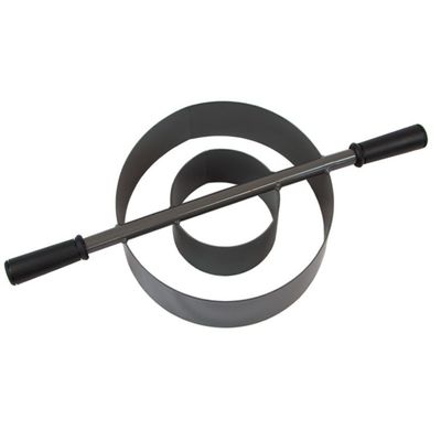 Infiltration rings are a simple and relatively inexpensive method for monitoring infiltration rates. They can also be used to study liquid waste disposal, leaching, and drainage efficiencies. Rings are inserted into the turf by pushing and twisting on the attached cross handle that is welded through the center. To determine infiltration rates and soil saturation, use a stopwatch to measure the dissipation duration.