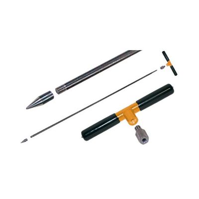 Probe up to 20` with extensions!: AMS extendible tile probes are made from high carbon stress relieved steel and are not plated. Designed for probing depths of 12` or more, they may also be used to prepare holes for insertion of small diameter soil or or gas vapor probes. At deeper depths, use an AMS slide hammer or compact slide hammer. Tile Probe Complete Includes: Base extension (3` or 4` option), tip, hammer adapter, 10" comfortably gripped cross handle.