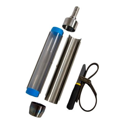 These samplers have a vertically split cylinder (Cup Set) that allows for easy extraction of soil cores that minimize the chance of disturbing the sample. It can be used without a liner to collect relatively undisturbed cores for immediate examination and testing, or with a liner to collect undisturbed samples to be prepared for laboratory analysis. The Cup Set interlocks and is held together by a Sampler Cap and Tip. The Cup Set, Cap, and Auger Tip are made of heavy-wall, 300-series stainless steel; the Core Tip is 400-series stainless steel. Additional Cup Sets and Couplers are available to collect longer samples.
