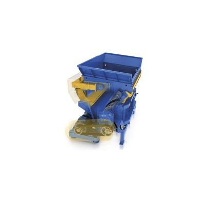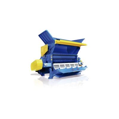 Destroyer is a slow rotating pre-shredder with electric drive and hydraulic pendulum feeder, with low energy consumption. The pendulum feeds the material against the rotor, equipped with fixed teeth that cut the material fixed against anvil steels. Final fraction is regulated by the integrated screen, 50-400 mm. The feeder, is operated by a last generation hydraulic system with variable displacementpump.