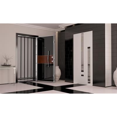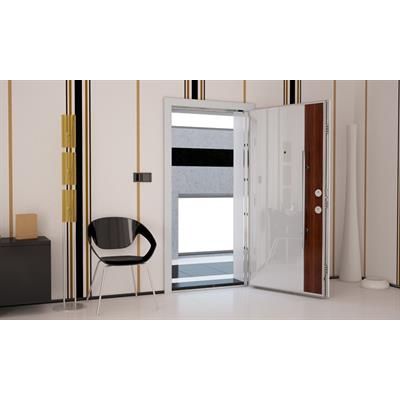 Leaf Front Face : 8mm mdf lam. Leaf Inside Face : 8mm mdf lam. Steel Leaf Frame : Coated with aluminium and stainless steel . Steel Frame : Painted with electrostatical powder paint. Lock : 6-Point Monoblock or 14-Point Central. Locking System.