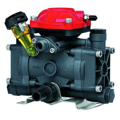 Annovi Reverberi AR252-SP/SGC 650 RPM semi-hydraulic two diaphragm alternating volumetric pump for use in gardening or semi-professional agricultural sector, trolley-mounted in combination with electric motors or internal combustion engines for gardening, and small sprayers for medium-pressure pesticide treatments in gardens, greenhouses, orchards or vineyards.