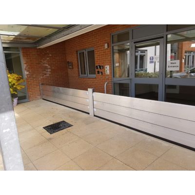 The Floodguard Screw-in Barrier benefits from an outwardly-curved, lightweight single panel which replicates the arch-dam principle, transmitting the loadings toward the edges and enhancing the seal. However it does not require a permanent back-frame fitted to the building. In this case, the only fixture is a small number of threaded sleeves along the sealing line which can be neatly capped off for minimal aesthetic disruption.