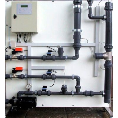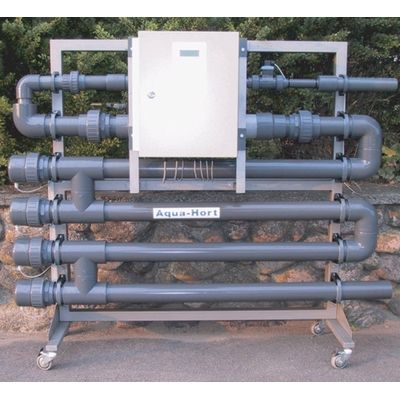 80 m3/hour, 300 gpm 100 or 200 amp; Dimension: 2,7 m long, 2,0 m high and 0,6 m deep. Pipes 125 mm mounted on alu frame. Mobile on 4 transport wheels. 8 Electrodes 20 mm, 2,0 m long. 88 Kgs Cu. Alu frame 139 x 120 cm. Electro magnetic treatment pipe. Flow Meter (Bürkert) DN110 Weight 162 Kgs