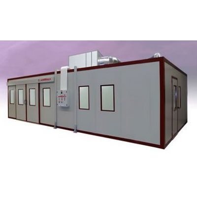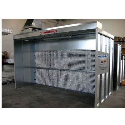 The Big Silver dry painting booth is suitable for suctioning and demolishing the pigments and fumes emitted from paint spray made with synthetic solvents, organic water. The removal of the pigments and fumes occurs with a suctioning wall of cardboard inertial and a second filtration with “Paint Stop” filters drawers. Big Silver is used for painting bulky elements in height. The dry painting booth is built with modular panels of galvanized press folded sheet iron.