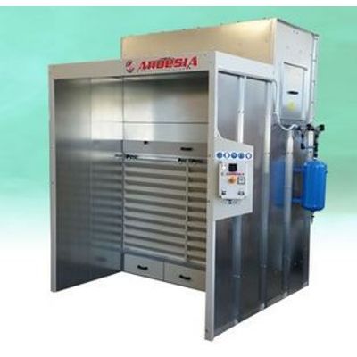 The pressurized drying plant Ardesia Box is suitable for the drying of freshly painted products in a dust free environment and with consistency in temperature and it is built with sandwich panels. The air flow for drying the products is created by a pressurized and extraction units.